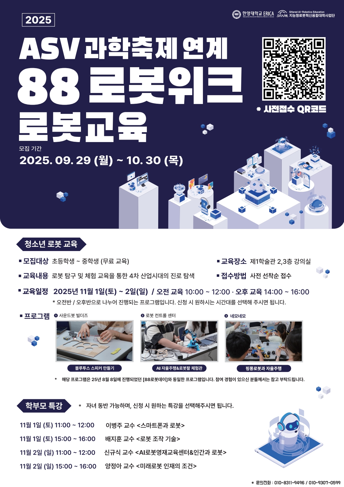 [ERICA] 2025 88로봇위크 청소년 로봇교육 & 학부모 특강 참가자 모집